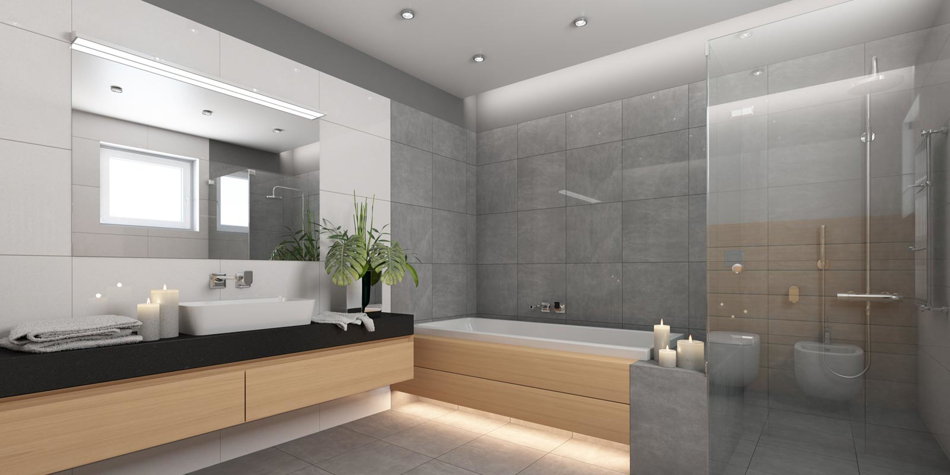 Ein ausgereiftes Beleuchtungskonzept im Bad sorgt dafür, dass Sie es zu jeder Tageszeit und für jeden Bedarf in die passende Lichtstimmung tauchen können. Für optimale Beleuchtung Ihres neuen Bads sind daher mindestens drei Lichtquellen nötig. Denken Sie daher schon vor der Sanierung über eine stimmungsvolle Deckenbeleuchtung, viel Licht am Waschtisch zur Beleuchtung des Spiegels sowie mindestens eine indirekte Lichtquelle nach.