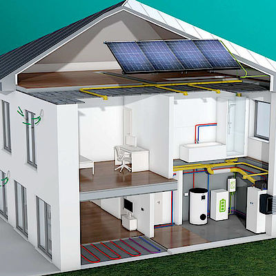 Wärmepumpe und Photovoltaikanlage ergänzen sich hervorragend. Die Photovoltaikanlage liefert günstigen Strom für die Wärmepumpe und senkt damit die Heizkosten. Im Gegenzug steigert die Wärmepumpe durch die erhöhte Abnahme des Solarstroms die Wirtschaftlichkeit der Photovoltaikanlage. Auch die Umwelt profitiert: Der eigene Solarstrom ist immer zu 100 % regenerativ.