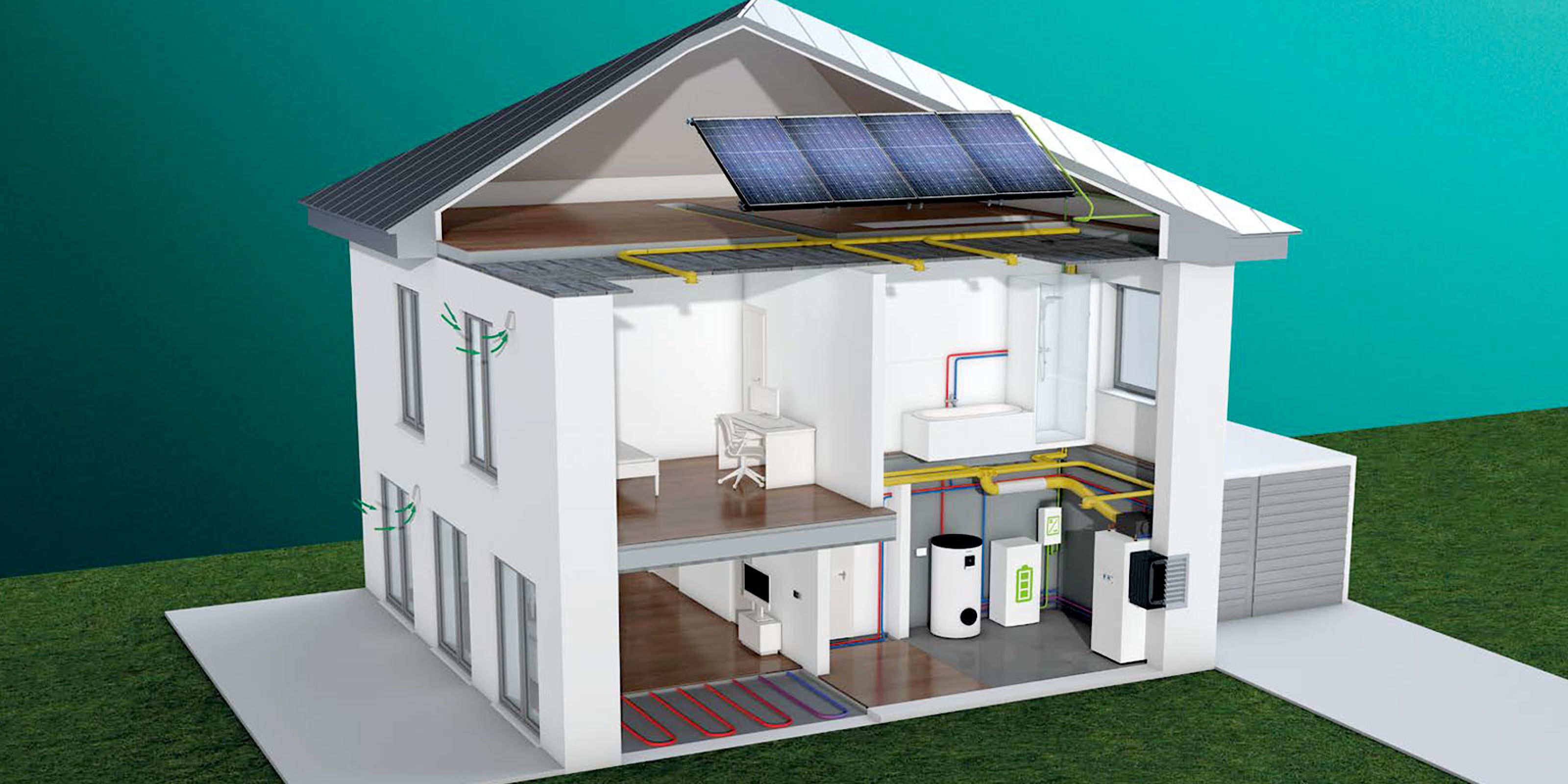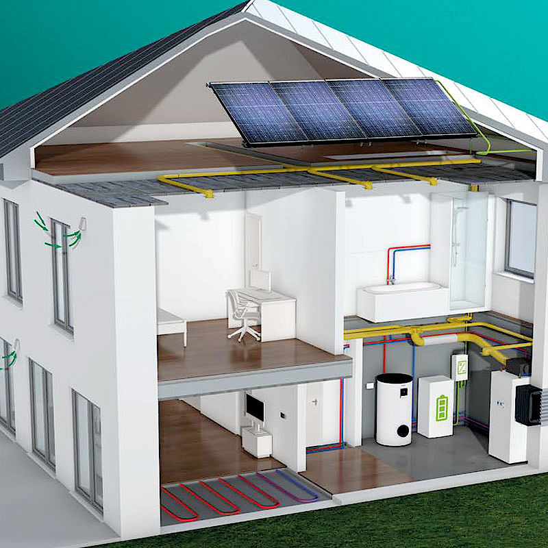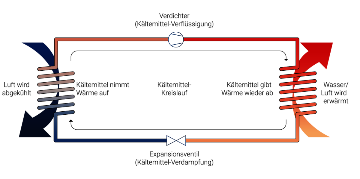 Abluft-Wärmepumpen nutzen die thermische Energie, die die Raumluft durch Heizkörper und Flächenheizungen, aber auch durch Beleuchtung, elektrische Geräte oder Körperwärme aufnimmt. Durch ein System mit kontrollierter Wohnungslüftung, Wärmerückgewinnung und Abluft-Wärmepumpe lässt sich diese Energie wiederverwenden. Da die Abluft gegenüber der Außenluft nur in begrenzter Menge zur Verfügung steht, muss die Leistung der Abluftwärmepumpe gut eingestellt werden. Sie planen ein System aus kontrollierter Wohnraumlüftung, Wärmerückgewinnung und Abluft-Wärmepumpe als einzige Heizquelle? Dann sollte ihr Haus einen hohen Effizienzstandard haben oder ein sogenanntes Niedrigenergie- oder Effizienzhaus sein.